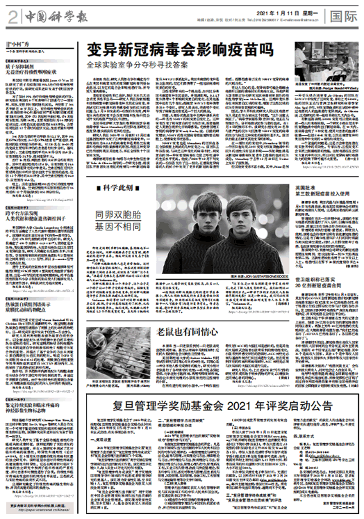 注:中国科学报周六周日不出版!