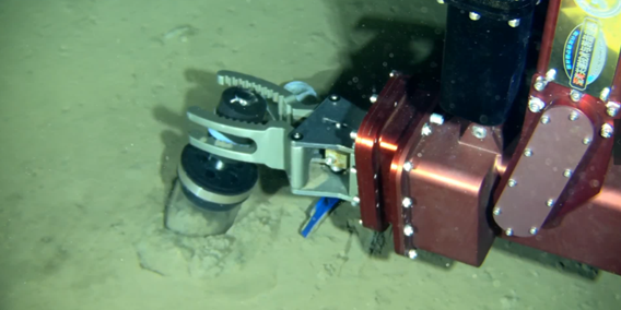 “海斗一号”机械手抓取海底沉积物样品 沈阳自动化所供图