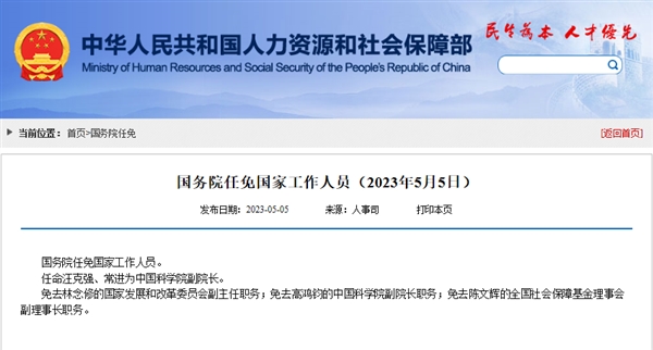 据人社部网站消息,国务院任免国家工作人员。任命汪克强、常进为中国科学院副院长。