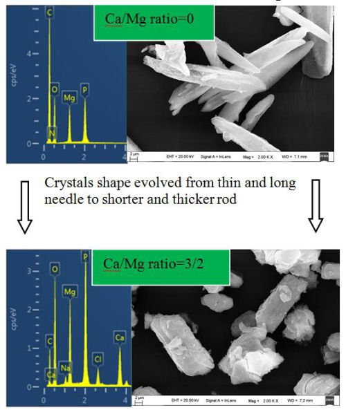 废水中钙离子对鸟粪石晶体形状、大小和纯度的影响