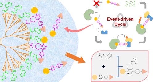 Abstract: Event-driven bifunctional molecules, typified by proteolysis targeting chimera (PROTAC) technology, have been successfully applied in degrading many proteins of interest (POI). Due to the unique catalytic mechanism, PROTACs will induce multiple cycles of degradation until the elimination of the target protein. Here, we propose a versatile “Ligation to scavenging” approach to terminate event-driven degradation for the first time. Ligation to the scavenging system consists of a TCO-modified dendrimer (PAMAM-G5-TCO) and tetrazine-modified PROTACs (Tz-PROTACs). PAMAM-G5-TCO can rapidly scavenge intracellular free PROTACs via an inverse electron demand Diels–Alder reaction and terminate the degradation of certain proteins in living cells. Thus, this work proposes a flexible chemical knockdown approach to adjust the levels of POI on-demand in living cells, which paves the way for controlled target protein degradation.