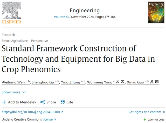 Weiliang Wen, Shenghao Gu, Ying Zhang, Wanneng Yang, Xinyu Guo, Standard Framework Construction of Technology and Equipment for Big Data in Crop Phenomics, Engineering, Volume 42, 2024, Pages 175-184, ISSN 2095-8099, https://doi.org/10.1016/j.eng.2024.06.001.