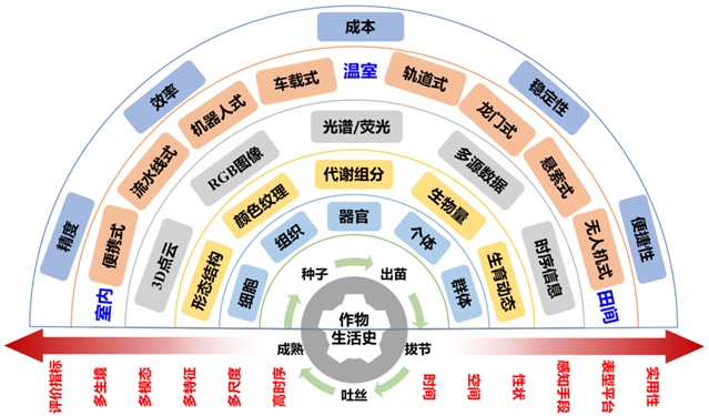 作物表型组学是近年来快速发展的国际作物科学研究热点领域,它通过多学科交叉合作,旨在突破作物表型高通量、自动、精准感知与获取,以及解决多模态、多尺度、多生境的组学大数据智能解析难题。然而,当前作物表型组学技术及装备产品的研发与应用缺乏标准规范,已成为限制作物表型产业高质量发展的瓶颈。