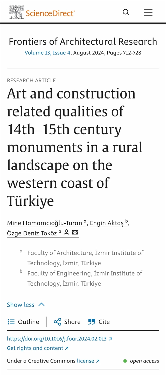 论文标题:Art and construction related qualities of 14th–15th century monuments in a rural landscape on the western coast of Türkiye