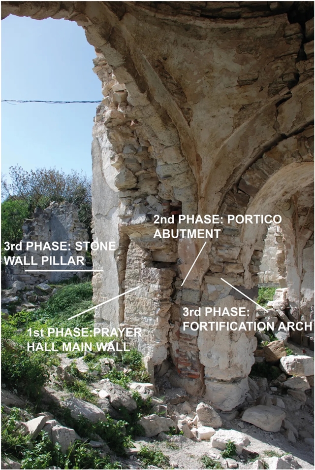 ▲ 图六:Detail view from the mosque illustrating the portions belonging to three different phases in the mosque, prayer hall at the left and the portico at the right, 3 March 2016。© 本文作者
