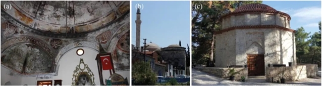 ▲ 图一:(a) Aysa Kad?n Mosque/Mordogan, restored in 2010 (RT, 2011), (b) _Ibrahim Bey Mosque/Urla, restored in 1981 (Aky?ld?z,1988) and 2018 (Yenicag, 2018), (c) Samut Baba Tomb/Urla, restored in 2012 (its inscription panel, Demirci, 2013), February-May 2016。© 本文作者