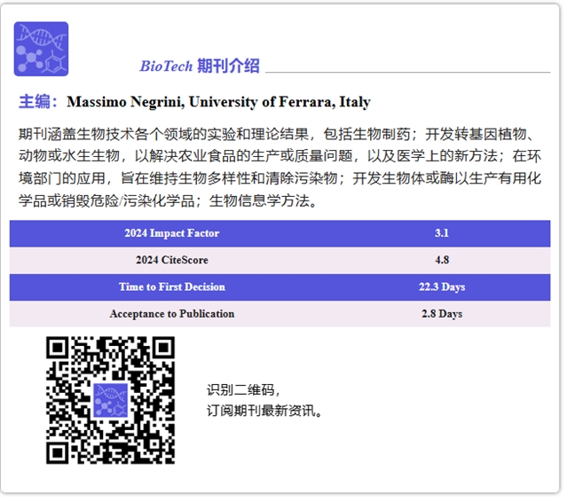 期刊主页:https://www.mdpi.com/journal/biotech