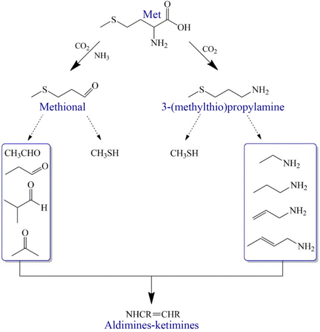 图2 支撑甲硫氨酸热解过程的可能降解路径。