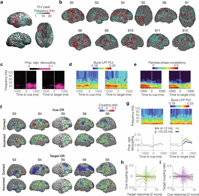 在空间注意力任务中,参与者在提示位置检测目标,通过使用人类颅内电生理学和脉冲神经网络,该课题组人员发现高频活动爆发(HFAbs)标志着群体放电升高的时间窗口,从而实现快速、远程通信。HFAbs是由感觉线索和目标激发的,与低频节奏动态耦合。值得注意的是,线索诱发HFAbs的强度及其与慢节奏的脱钩都预测了行为的准确性。HFAbs在整个大脑中同步,显示出不同的线索和目标激活的子网络。这些子网络在目标发生后表现出超前-滞后动态,当线索具有信息性时,线索激活的子网络先于目标激活的子网络。计算模型表明,HFAbs反映了向人口峰值的过渡,表示支持注意力表现的网络通信的时间窗口。这些发现确立了HFAbs作为人口状态转换的特征,支持信息在分布式大脑网络中的路由。