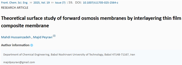 Mahdi Hussainzadeh, Majid Peyravi. Theoretical surface study of forward osmosis membranes by interlayering thin film composite membrane. Front. Chem. Sci. Eng., 2025, 19(7): 59