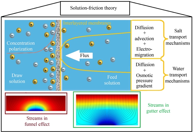 近年来,通过理论与实证相结合的方法,大量研究聚焦于膜支撑层相关的各类影响因素,如孔径大小、孔隙率、厚度、疏水性及亲水性等。结合数值与分析建模,这些变量通过多种二维和三维模型进行描述,针对这些参数与变量的模型也已经得到发展。在选择性层的设计中,基于不同形貌、尺寸或孔隙率的各类材料被用作中间层,但由于缺乏相关的研究和建模,现有文献对中间层的报道相对不一致。通过对复合薄膜中中间层的影响进行建模,可为优化其它膜工艺提供创新性见解。因此,本研究重点关注中间层及其性能的建模与探讨,尤其是在正向渗透过程中——该领域的科学数据与建模研究较为匮乏。除了探讨所有膜工艺中中间层所产生的“漏斗效应”和“沟槽效应”外,对正向渗透过程中中间层影响的建模还将提供可能影响其它工艺的新视角。