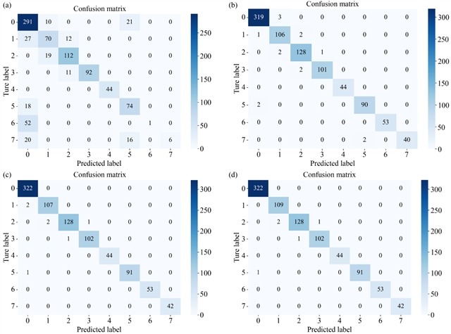 图3 故障分类混淆矩阵对比图。故障分类混淆矩阵对比图。(a) ANN模型;(b) BP模型;(c) CNN模型;(d) CNN-MHA模型。
