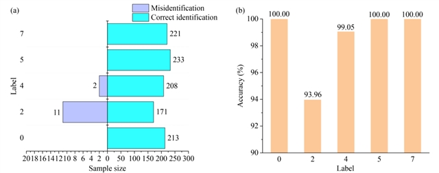 图4 不同特征数量下的诊断效果对比图。(a) 验证样本分类结果;(b) 验证样本分类准确率。