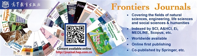 由教育部主管、高等教育出版社主办的《前沿》(Frontiers)系列英文学术期刊,于2006年正式创刊,以网络版和印刷版向全球发行。系列期刊包括基础科学、生命科学、工程技术和人文社会科学四个主题,是我国覆盖学科最广泛的英文学术期刊群,其中12种被SCI收录,其他也被A&HCI、Ei、MEDLINE或相应学科国际权威检索系统收录,具有一定的国际学术影响力。系列期刊采用在线优先出版方式,保证文章以最快速度发表。