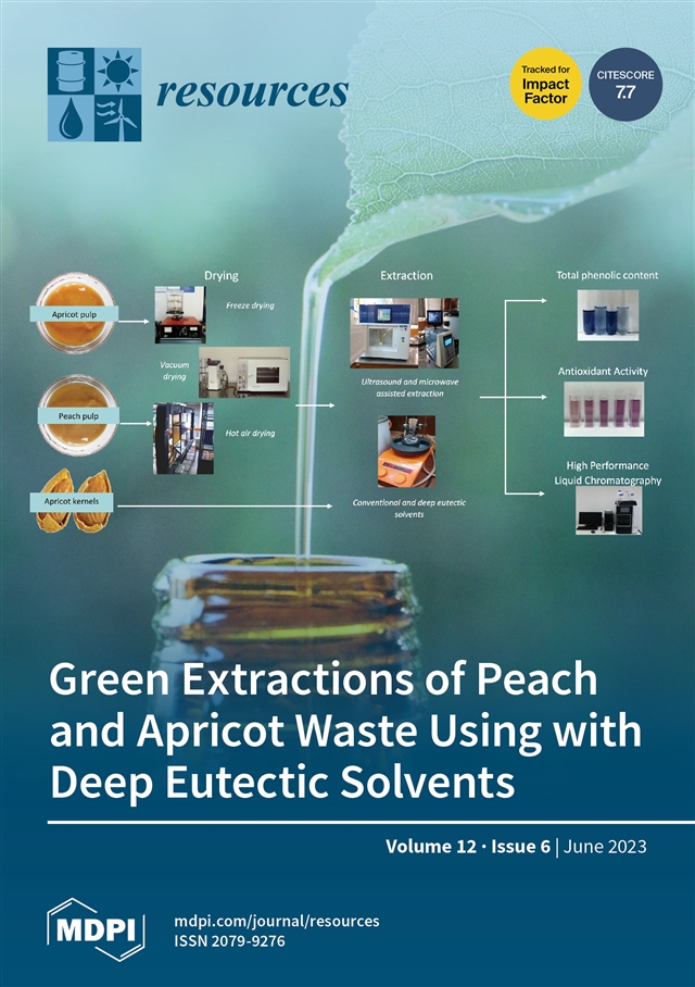 Stramarkou, M.; Oikonomopoulou, V.; Panagiotopoulou, M.; Papadaki, S.; Krokida, M. Sustainable Valorisation of Peach and Apricot Waste Using Green Extraction Technique with Conventional and Deep Eutectic Solvents. Resources. 2023, 12, 72.