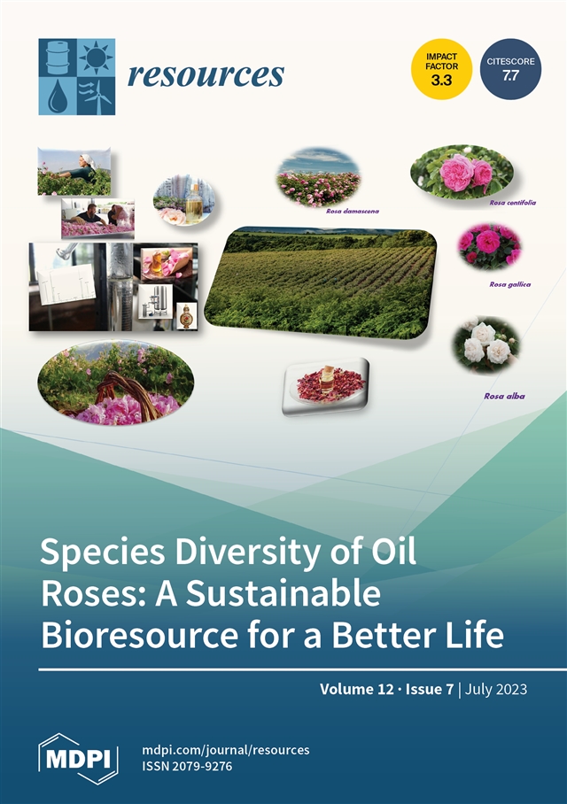 Dobreva, A.; Nedeva, D.; Mileva, M. Comparative Study of the Yield and Chemical Profile of Rose Oils and Hydrosols Obtained by Industrial Plantations of Oil-Bearing Roses in Bulgaria. Resources. 2023, 12, 83.