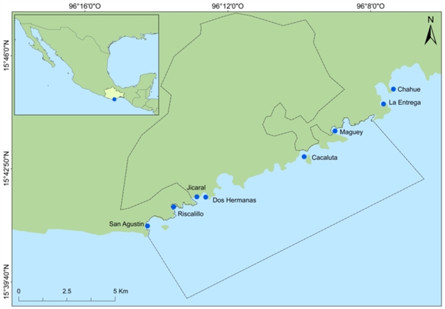 研究区域瓦图尔科礁区位于墨西哥南部太平洋特万特佩克湾西缘,受东太平洋暖池影响,常年海表温度较高且年度波动较小。每年11月至次年3月,该区域会受到强风暴的影响,显著改变水体结构并形成复杂的沿岸环流。厄尔尼诺-南方涛动(ENSO)事件是墨西哥南太平洋年际海洋环境波动的主要因素,其不同相位之间的间隔通常为 4–5 年。