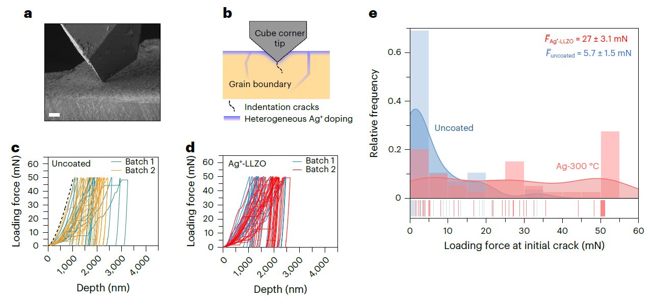 2026年1月16日,来自美国斯坦福大学、亚利桑那州立大学和布朗大学的研究团队在Nature Materials期刊上发表一篇题为“Heterogeneous doping via nanoscale coating impacts the mechanics of Li intrusion in brittle solid electrolytes”的最新成果。