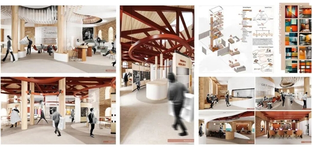 ▲ 图三:学生与人工智能协同生成的概念设计及室内效果图示例。©本文作者