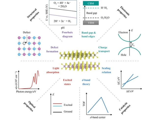 利用缺陷工程设计高性能二维光催化材料的关键在于稳定性、电子结构、光学性能和催化活性。形成能和腐蚀性评估材料稳定性,带隙和带边位置决定是否满足光催化反应需求,光学带隙和激子结合能影响光吸收效率。催化活性则通过带心、吸附能等描述符来衡量,适合的描述符可以加速高效材料的筛选与优化。