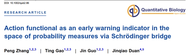 近日,华中科技大学高婷教授团队和大湾区大学段金桥教授团队联合在Quantitative Biology期刊发表创新性研究“Action functional as an early warning indicator in the space of probability measures via Schrödinger bridge”,提出一种基于薛定谔桥(Schrödinger bridge)的全新框架,将作用量泛函(action functional)作为概率测度空间中的早期预警信号(EWS),成功应用于阿尔茨海默病(AD)的预警预测和 Morris-Lecar 神经元模型的转换动力学分析,为复杂疾病的临界转变检测提供了新范式。