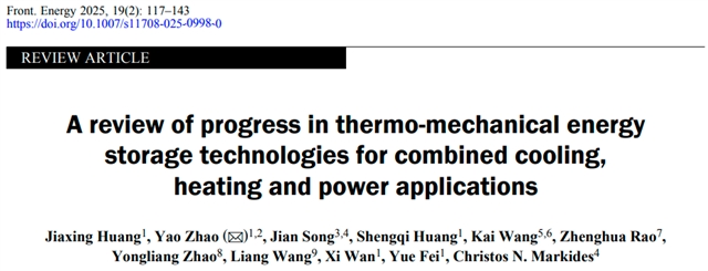 Jiaxing Huang, Yao Zhao*, Jian Song, Shengqi Huang, Kai Wang, Zhenghua Rao, Yongliang Zhao, Liang Wang, Xi Wan, Yue Fei, Christos N. Markides. A review of progress in thermo-mechanical energy storage technologies for combined cooling, heating and power applications. Front. Energy, 2025, 19(2): 117–143 https://doi.org/10.1007/s11708-025-0998-0