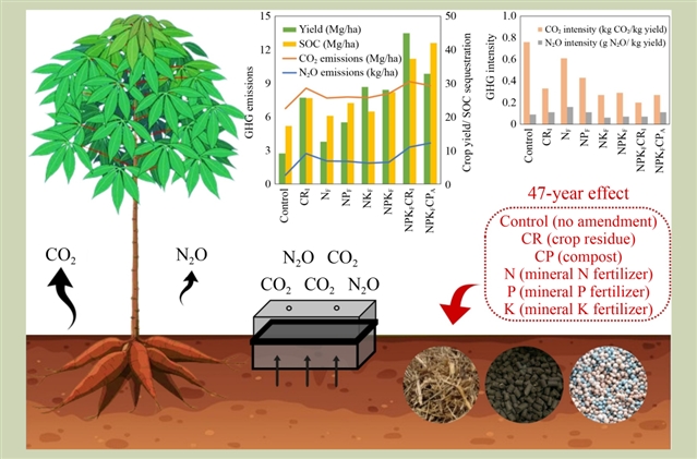 论文标题:Greenhouse gas emissions from cassava production influenced by 47 years of diverse fertilizer application practices in Thailand: insights from two years of measurements