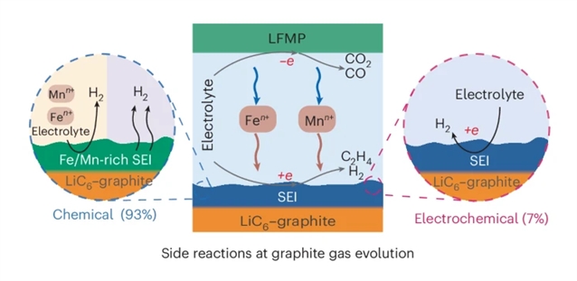 LiFexMn1−xPO4正极材料在提升电池安全性、功率密度和成本效益方面具有显著潜力。然而,气体的产生会缩短电池的循环寿命,并引发额外的安全问题,成为一大挑战。目前,学界对LiFexMn1−xPO4电池中的气体产生机制了解甚少,这阻碍了材料的改进工作。