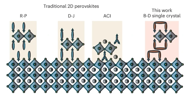 二维(2D)金属卤化物钙钛矿因其光电应用而备受关注。传统的2D钙钛矿包括Ruddlesden–Popper(R-P)相、Dion–Jacobson(D-J)相和交替阳离子相。