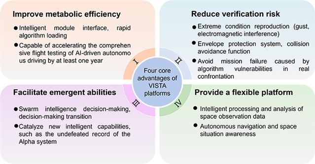 通过分析美国ACE、中国“神鹰—1”、Alpha空战系统三大项目,团队总结试验飞机平台四大核心优势:高效迭代验证、降低验证风险、促进能力涌现、提供灵活载体。