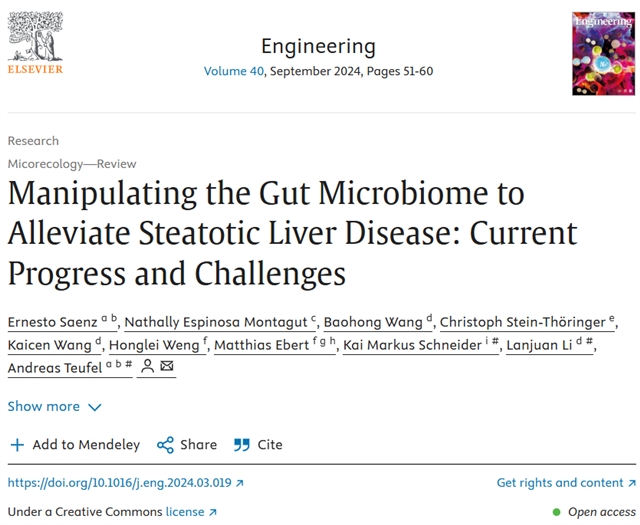 由德国海德堡大学 Andreas Teufel 教授、中国浙江大学李兰娟教授等多国研究人员共同合作,在中国工程院院刊《Engineering》发表了题为 “Manipulating the Gut Microbiome to Alleviate Steatotic Liver Disease: Current Progress and Challenges” 的综述文章,系统剖析肠道微生物群在代谢功能障碍相关脂肪性肝病(MASLD)治疗中的进展与挑战,为攻克这一全球性肝病提供了全新研究视角。