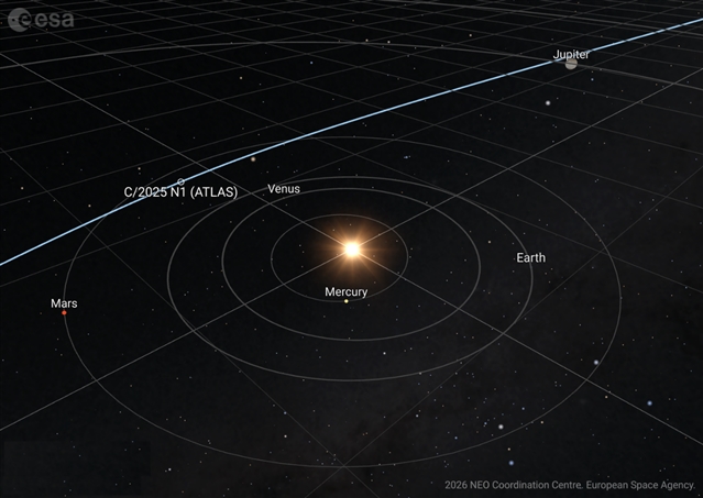 彗星3I/ATLAS穿越太阳系内侧的轨迹示意图。来源:ESA NEOCC