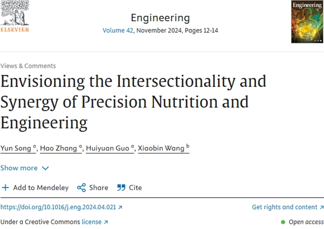 Yun Song, Hao Zhang, Huiyuan Guo, Xiaobin Wang. Envisioning the Intersectionality and Synergy of Precision Nutrition and Engineering. Engineering, 2024, 42(11): 15-17 DOI:10.1016/j.eng.2024.04.021