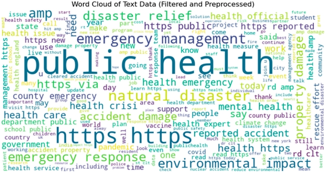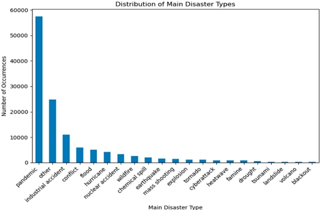对288,926条推文样本的分析揭示了灾害相关网络讨论的特征。疫情相关推文占主导地位(45.74%),反映了数据收集期间全球健康危机的广泛影响。工业事故(8.82%)和冲突(4.65%)也构成了数据集的重要部分。无监督文本分析通过词云和K-Means聚类技术揭示了数据中的潜在语义结构,识别出四个不同的聚类,分别侧重于公共卫生新闻、直接影响和损害、操作和环境响应以及更广泛的灾害救援工作。这些发现为理解灾害相关在线交流的多个方面提供了基础结构。