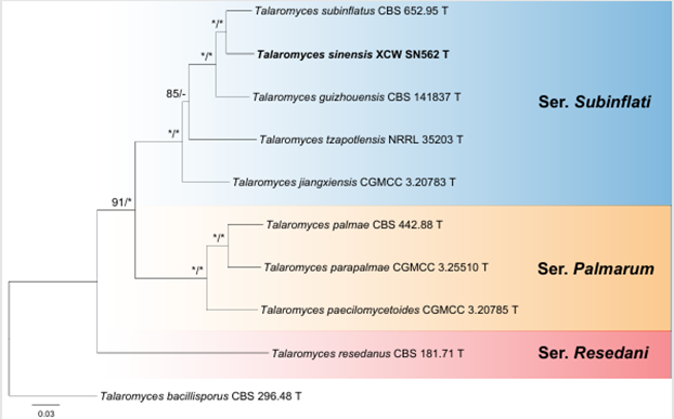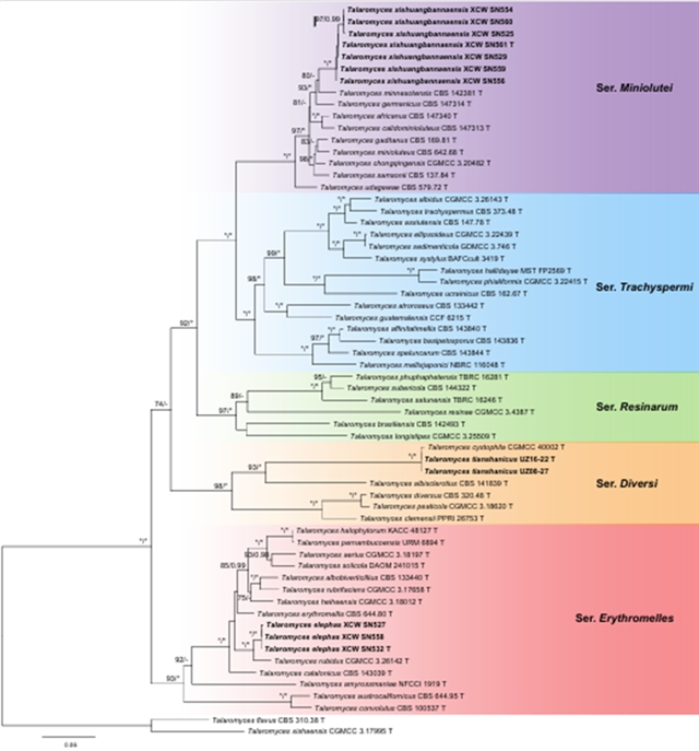 你是否曾想过,在我们脚下的土壤中、在腐烂的果实表面,在那些不易看见的微观世界里,正活跃着一群功能多样的真菌——篮状菌(Talaromyces)?它们不仅默默参与自然界的物质循环,更是人类开发利用微生物资源的重要宝库。然而,与近缘的曲霉属(Aspergillus)和青霉属(Penicillium)相比,篮状菌属长期缺乏系级(Series)阶元水平上完善的分类系统,这给该属的物种鉴定和系统发育研究带来了不小困难。