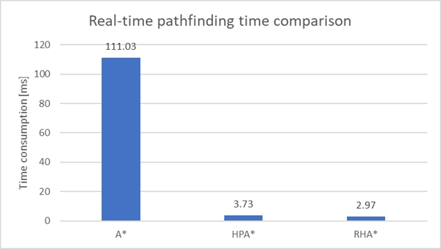 实验结果表明,RHA* 算法的性能表现卓越。在实时路径规划方面,其计算时间相较于 A* 算法减少了96.64%,相较于 HPA* 算法减少了20.38%。在路径质量方面,其生成路径的总成本与 A* 算法计算出的最优路径相比,偏差不超过0.05%,该偏差值比 HPA* 算法降低了99.2%。