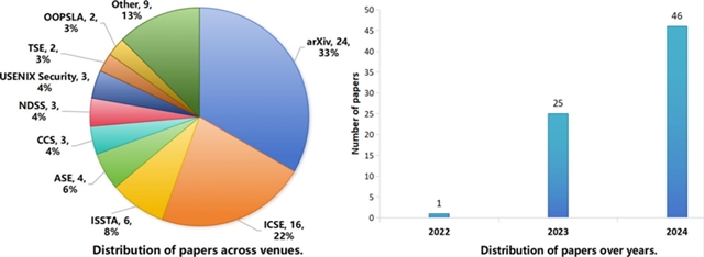 针对当前基于大语言模型进行软件缺陷检测技术发展迅速,研究现状调研不充分问题,国防科技大学潘祖烈教授团队撰写了综述论文:基于大语言模型的软件缺陷检测综述。 文章旨在收集聚焦基于大语言模型进行软件缺陷检测的高质量研究论文,研究相关技术发展进展,归纳方法创新趋势,预测基于大语言模型在软件缺陷检测领域的技术发展前景。
