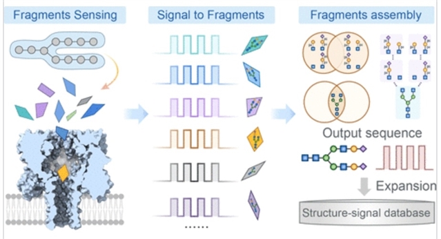 纳米孔技术已成为聚糖测序的重要平台,可实现单个寡糖的实时读取。此前研究组提出了三种基于纳米孔的聚糖解码概念性策略,包括水解测序、链测序和组装测序。然而,通过片段重构聚糖完整序列的可行性尚未得到验证。