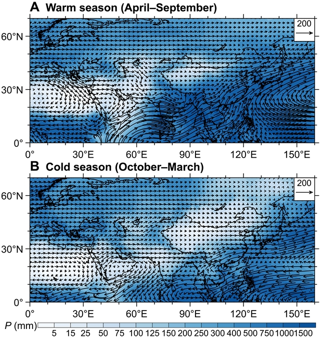 这种波动受冰期-间冰期旋回中冰量变化驱动的降温效应所引发的大气湿度改变控制。在MIS5、MIS4-2及MIS1各时期,西风主导的中亚北部伊朗地区与季风主导的东亚地区在粉尘堆积速率和湿度方面呈现显著时空差异。尤其值得注意的是,受日照量变化调控的水汽输送机制,导致西风带降水与季风降水呈现反相位变化特征。