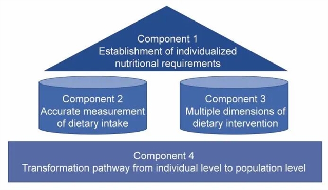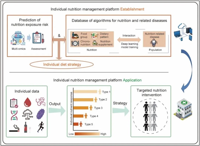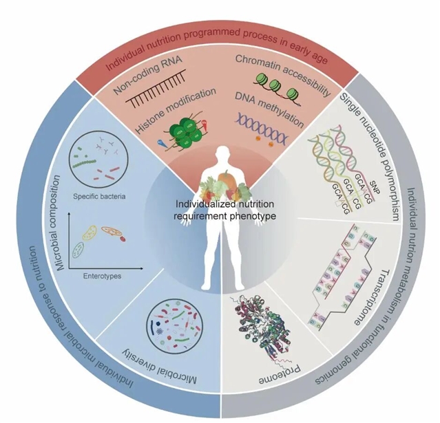 为此,研究团队提出精准营养的综合框架:第一,准确刻画个体对食物和营养素的反应,引入个体化营养需求表型组学概念,通过基因组学、表观遗传学和肠道微生物组共同刻画个体对营养素的真实需求;第二,开发膳食暴露与机体营养状况的精准测量技术;第三,解决吃什么、怎么吃和何时吃等问题的多维度营养干预策略的设计;第四,精准营养干预方法的人群层面实施路径以及精准营养相关政策的制定,构建基于人工智能的信息集成平台,打通科研成果向医疗实践转化的路径。