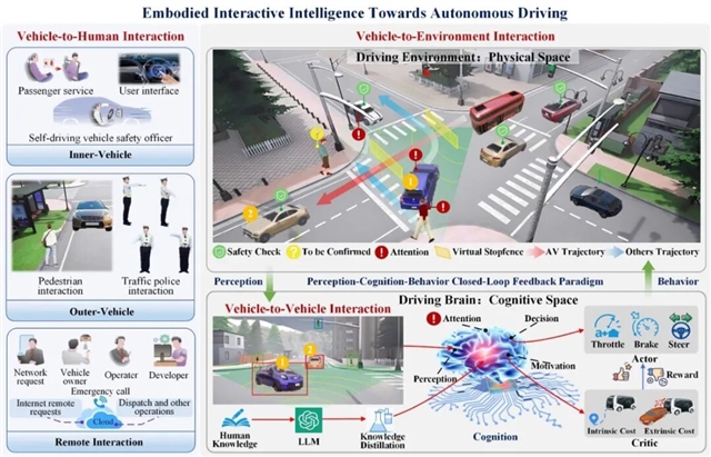 清华大学李德毅和北京工业大学马楠作为通讯作者在中国工程院院刊《Engineering》期刊上发表“无人驾驶具身交互智能”的研究论文,提出了无人驾驶具身交互智能理论框架——通过跨媒体感知、机器学习、认知计算和生成式人工智能等技术,构建与物理世界统一的智能表达与学习方法。该研究创新性地构建了端到端感知-认知-行为闭环反馈范式,使无人车不仅能交互、会学习、可信任,更能在日常驾驶中遇到的每一个碎片化场景中进行自主终生学习。通过自学习、自成长能力,以有限的驾驶经验逼近无限的智能,从而增强机器的智能化水平,真正实现人机融合,使无人车具备情境理解能力,为大众所接受。