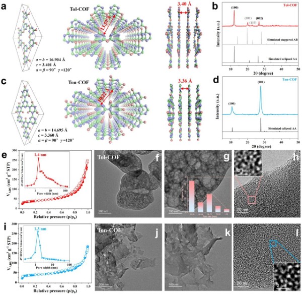 图2:两种同源COFs的微观结构/形貌表征。