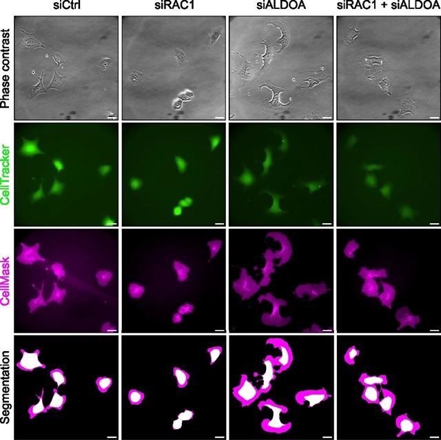 通过全基因组筛选,该课题组人员鉴定出醛缩酶A,一种转化果糖-1,6-二磷酸(FBP)的关键糖酵解酶,作为一种将代谢通量与FA组装和细胞形态发生联系起来的调节开关。该课题组人员发现细胞FBP作为一种信号代谢物,将代谢细胞状态的信息传递给基于肌动蛋白的细胞粘附和突起机制。该机制涉及FBP与Rac1抑制剂RCC2结合,并伴随Rac1活性的升高,导致肌动蛋白重组、FA组装增加和突起活性升高。