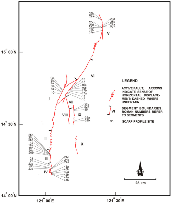 Rimando, R.E.; Knuepfer, P.L.K. Earthquake History and Rupture Extents from Morphology of Fault Scarps Along the Valley Fault System (Philippines). GeoHazards 2025, 6, 23. https://doi.org/10.3390/geohazards6020023