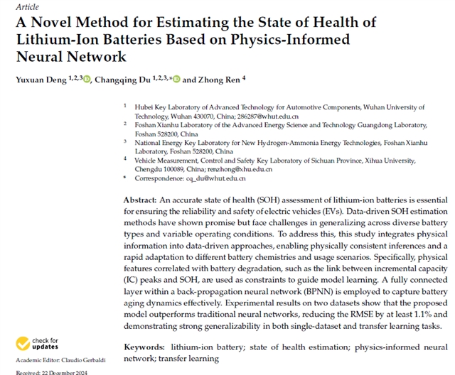 文章提出了一种将物理退化特征(如增量容量峰)作为约束融入神经网络的新框架,用于提升锂离子电池SOH估计的准确性与跨数据集泛化能力。