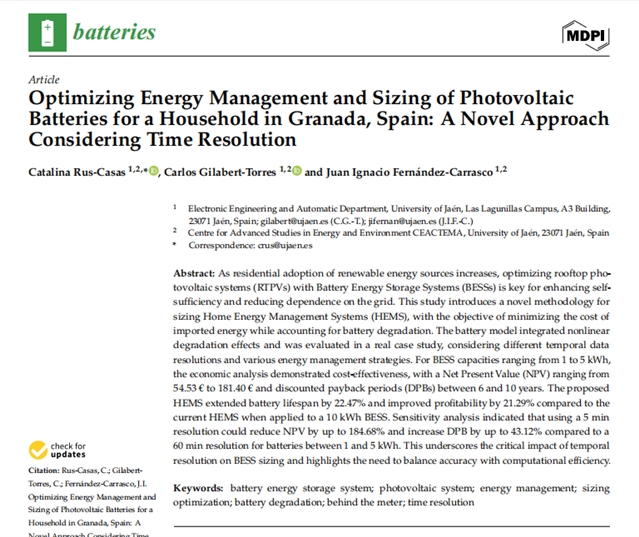 西班牙格拉纳达家庭光伏电池系统容量优化与能源管理:一种基于时间分辨率的新型方法