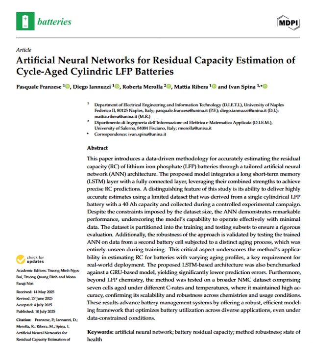 本文提出一种基于数据驱动的方法,通过定制化的人工神经网络架构实现磷酸铁锂电池剩余容量的精确估算。