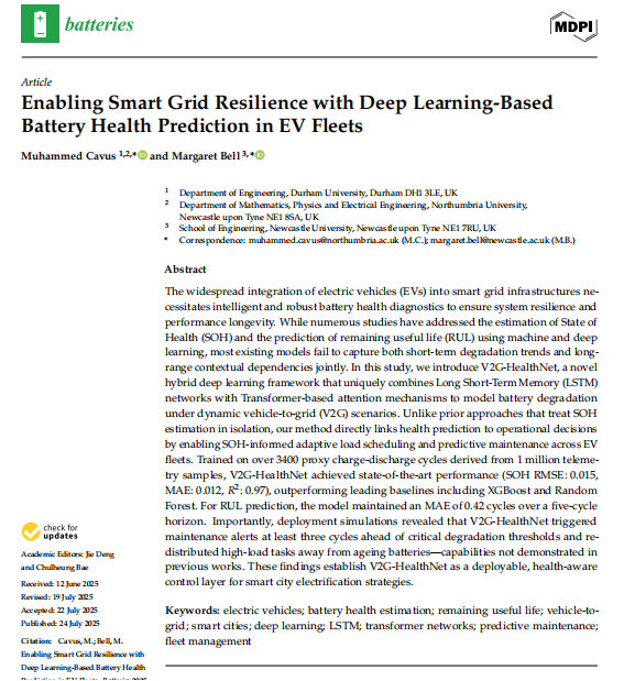 本研究提出V2G-HealthNet——一种创新的混合深度学习框架,该框架首次将长短期记忆网络与基于Transformer的注意力机制相结合,用于模拟车网互动动态场景下的电池退化过程。