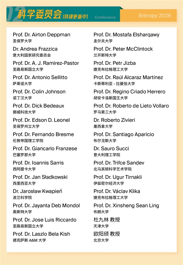 如有赞助意向或需就其他相关事务进行咨询,请随时与会务组联系获取详细信息:entropy2026@mdpi.com