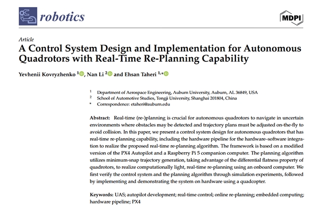 具有实时重新规划功能的自主四旋翼飞行器控制系统设计与实现